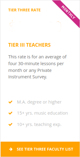 For private lessons, differing tiers represent the following factors: Experience, Education, type of degree and Effectiveness.